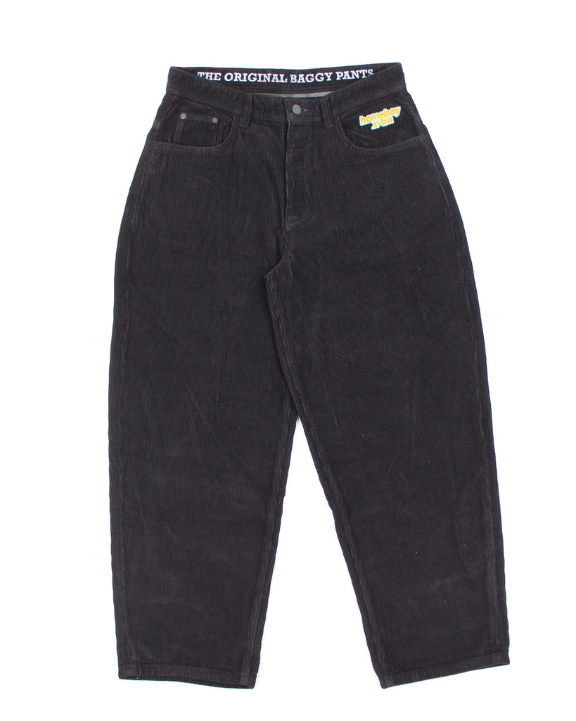 - Corduroy : Are you looking for a tear-resistant baggy, but don't feel like having another pair of jeans in your closet? Then grab our baggy corduroy pants. Thanks to the material, they can withstand it if you take a closer look at the floor. From classic black, to olive and beige to light blue tones, everything is included.
