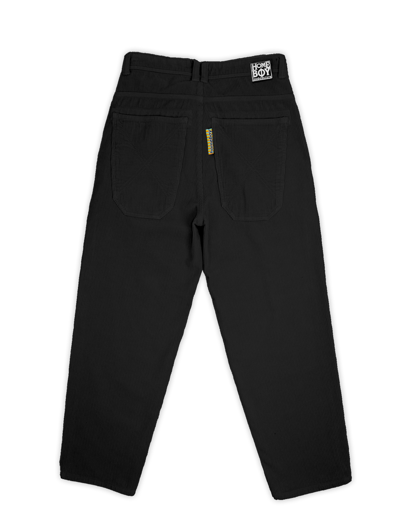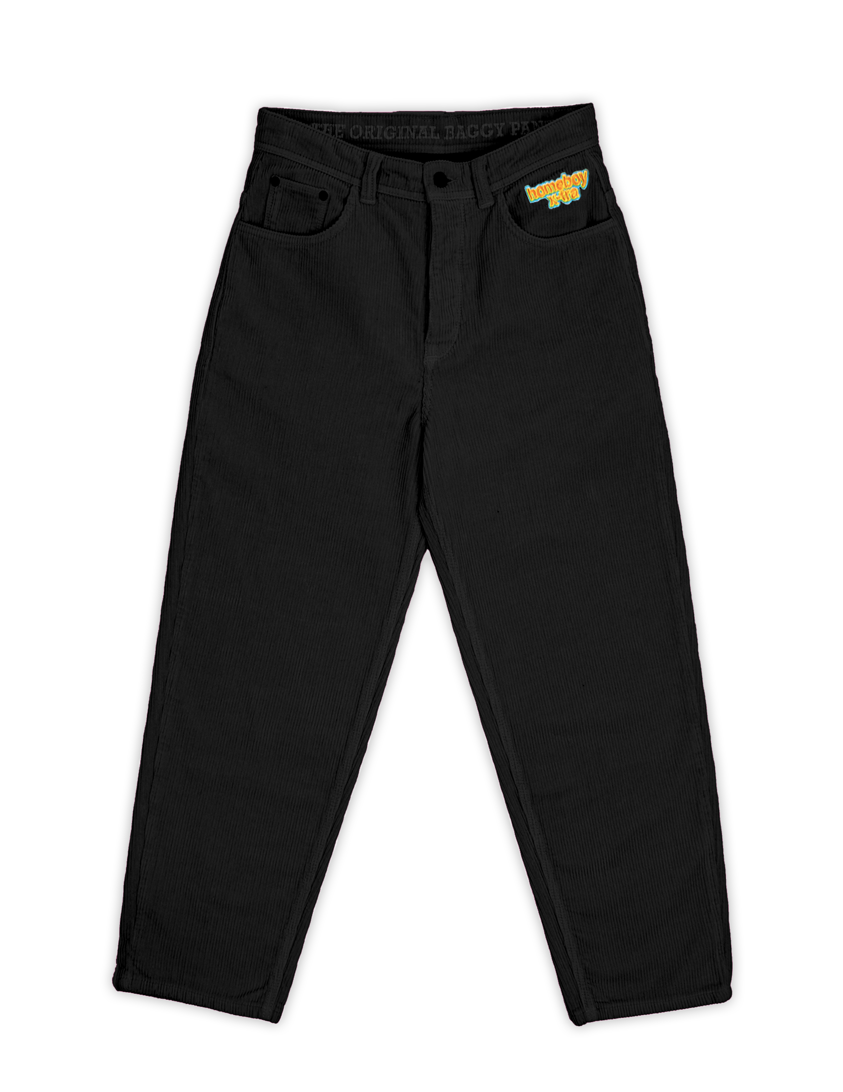 Our X-Tra Cord Baggy have a classic vintage look because we have kept the key details from the 90s. These include the multi-colored "homeboy x-tra" embroidery under the waistband, the rainbow fly tab and the X embroidery on the back pocket. The back pocket is also cut a little lower, just like it was back then, giving the pants an additional loose-fit look.