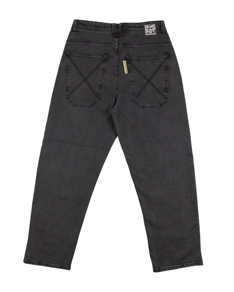 Our baggy jeans have a classic vintage look, as we faithfully reproduced the key details from the denim trousers of the 90s. These include the multicolored "homeboy x-tra" embroidery under the waistband, the rainbow fly tab, and the X embroidery on the back pocket. The back pocket is also cut slightly lower, just like back then, giving the trousers an additional loose-fit look.