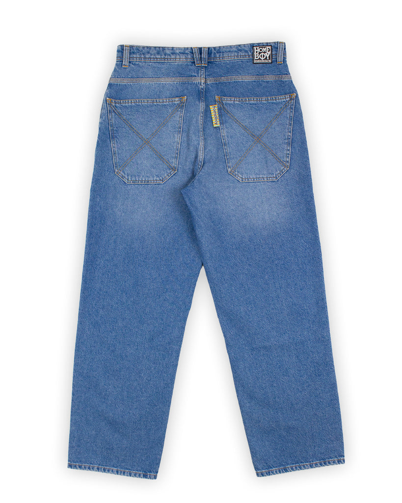 Our baggy jeans have a classic vintage look, as we faithfully reproduced the key details from the '90s. These include the multicolored "homeboy x-tra" embroidery under the waistband, the rainbow fly tab, and the X embroidery on the back pocket. The back pocket is also cut a bit lower, just like back then, giving the pants an additional loose-fit look.