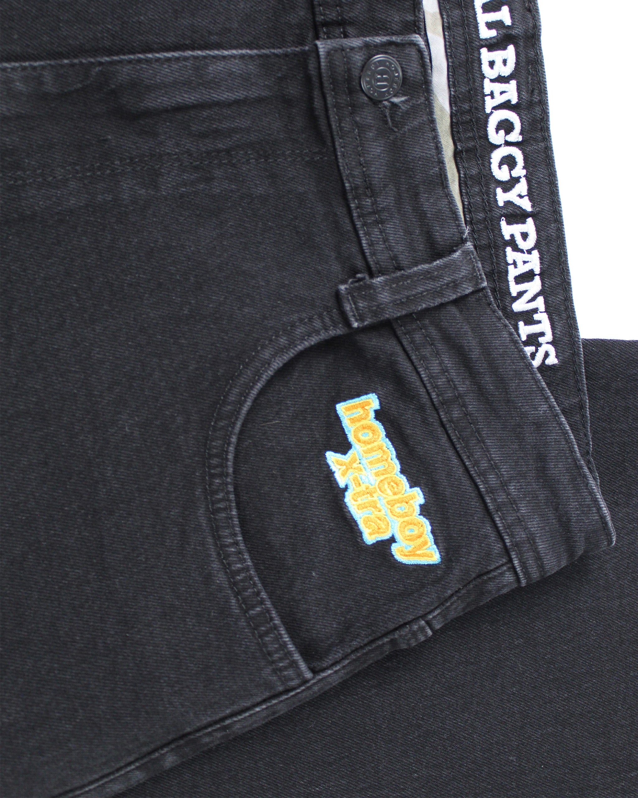 Our baggy jeans have a classic vintage look, as we faithfully reproduced the key details from the '90s. These include the multicolored "homeboy x-tra" embroidery under the waistband, the rainbow fly tab, and the X embroidery on the back pocket. The back pocket is also cut a bit lower, just like back then, giving the pants an additional loose-fit look.