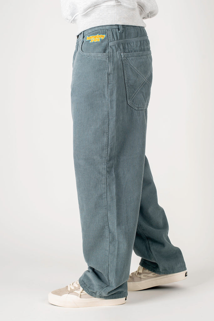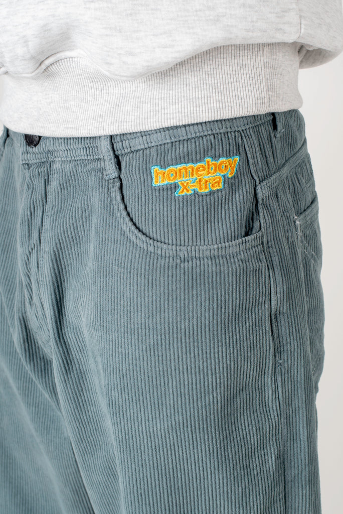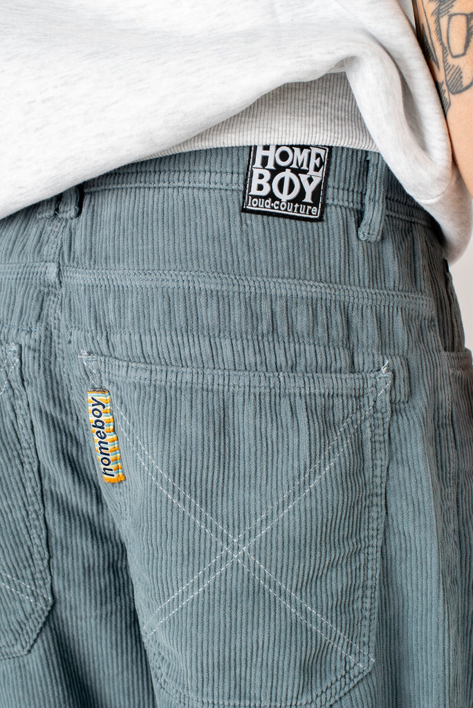 Nos X-Tra Cord Baggy ont un look vintage classique car nous avons fidèlement adopté les détails clés des années 90. Il s'agit notamment de la broderie multicolore « homeboy x-tra » sous la ceinture, de la braguette rétro et de la broderie X sur la poche arrière. La poche arrière est également coupée un peu plus profondément, comme à l'époque, ce qui confère au pantalon un aspect ample supplémentaire. La coupe, en revanche, est innovante et moderne : le pantalon baggy a une coupe fuselée, c'est-à-dire qu'il se rétrécit légèrement du genou jusqu'à l'ouverture des jambes. Notre cordon baggy est également légèrement raccourci, il n'est donc pas aussi long que ses prédécesseurs des vieilles vidéos hip-hop des années 90.