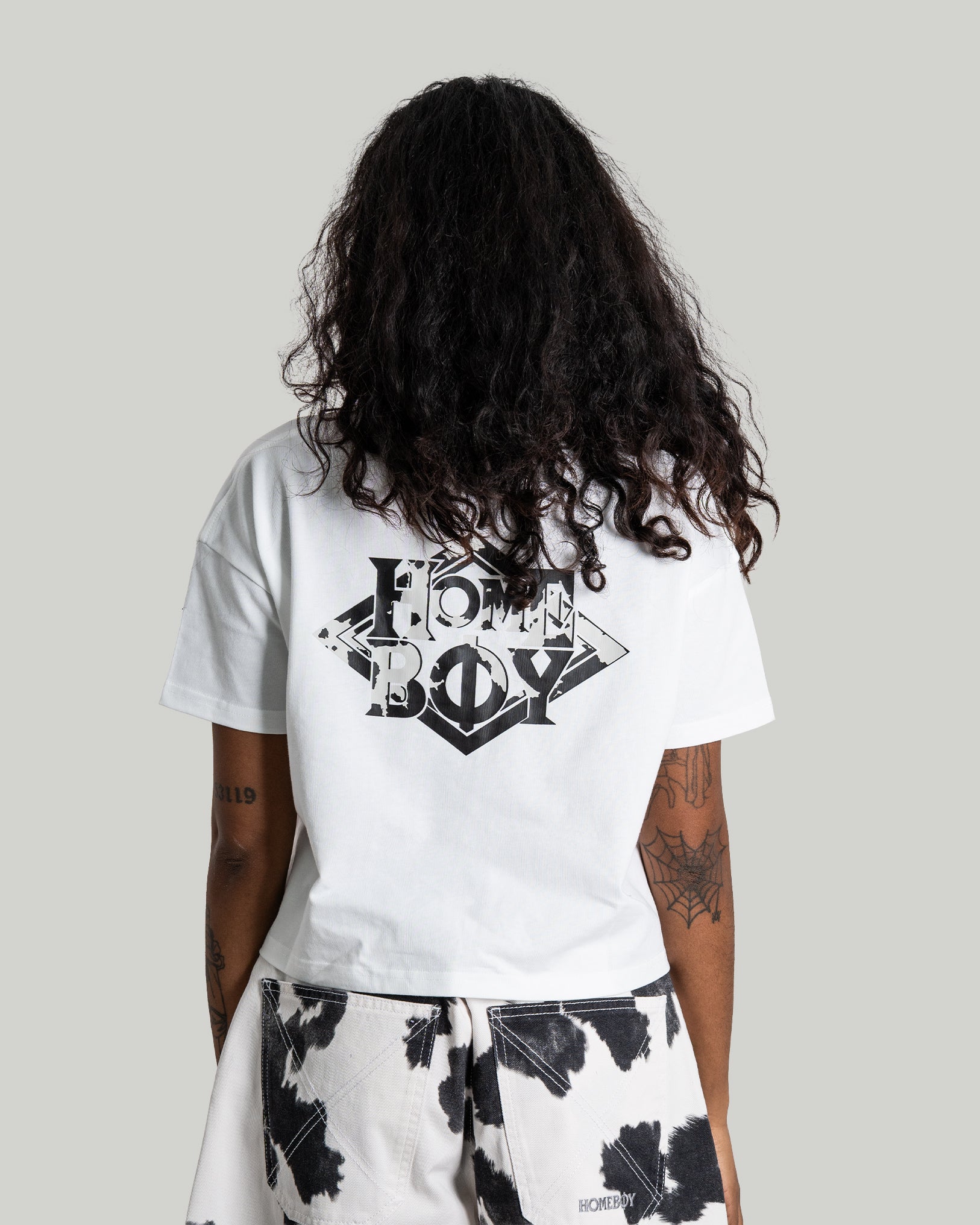 Der kontrastreiche Cow-Print in Schwarz und Weiß greift den Western-Look auf und übersetzt ihn in moderne Streetwear. Perfekt kombinierbar mit cleanen T-Shirts, Tanks oder Oversized Tops für auffällige Summer-Fits.