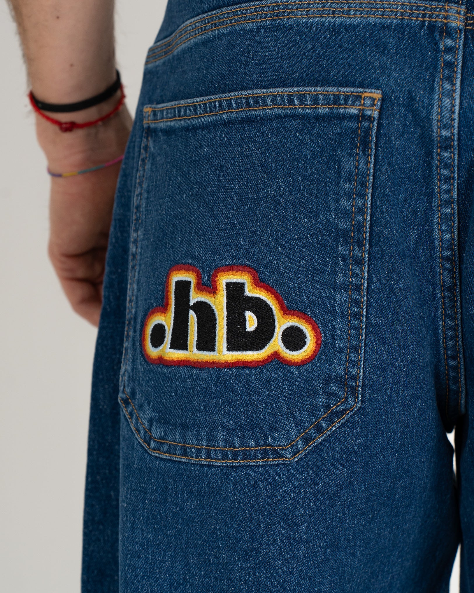 Highlight der Shorts ist die originale .hb Stickerei aus der HOMEBOY Kollektion von 1993. Sie ist sowohl auf der Gesäßtasche als auch vorne unter dem Bund platziert und greift damit direkt auf die Heritage der Marke zurück.